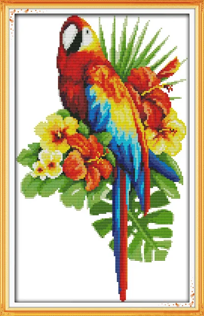 Parrot & Tropical flowers cross stitch kit, 14ct Aida Print and Unprint in Stock