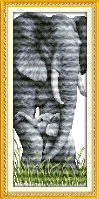 The elephant mother and son cross stitch kit – ships from the manufacture