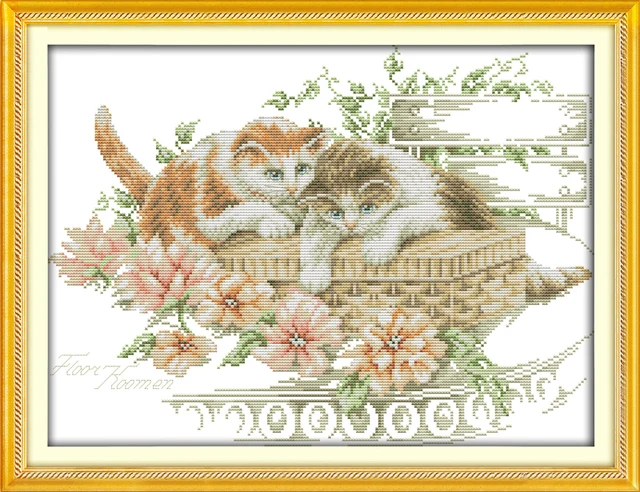 Flowers and cats cross stitch kit